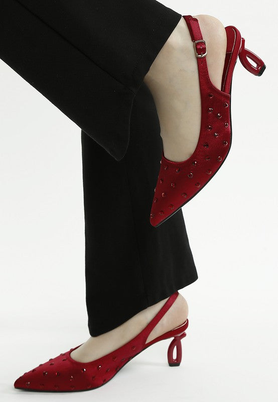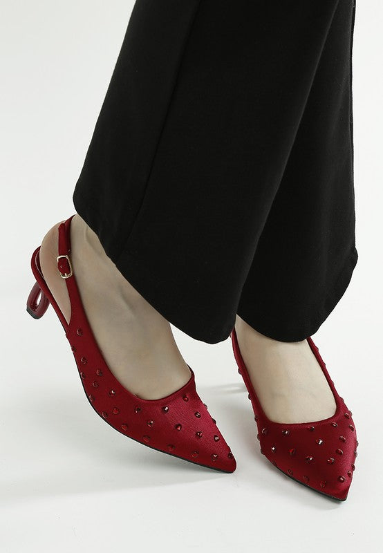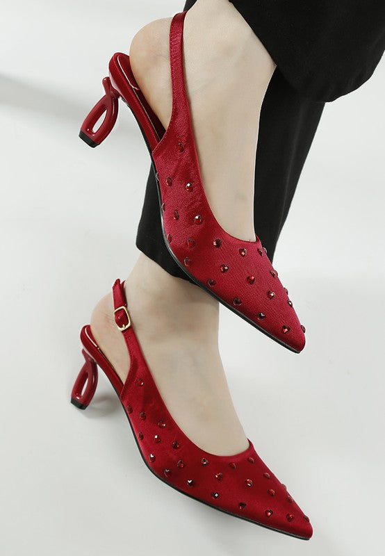 Dasavla Heart-Shaped Rhinestone Studded Slingbacks