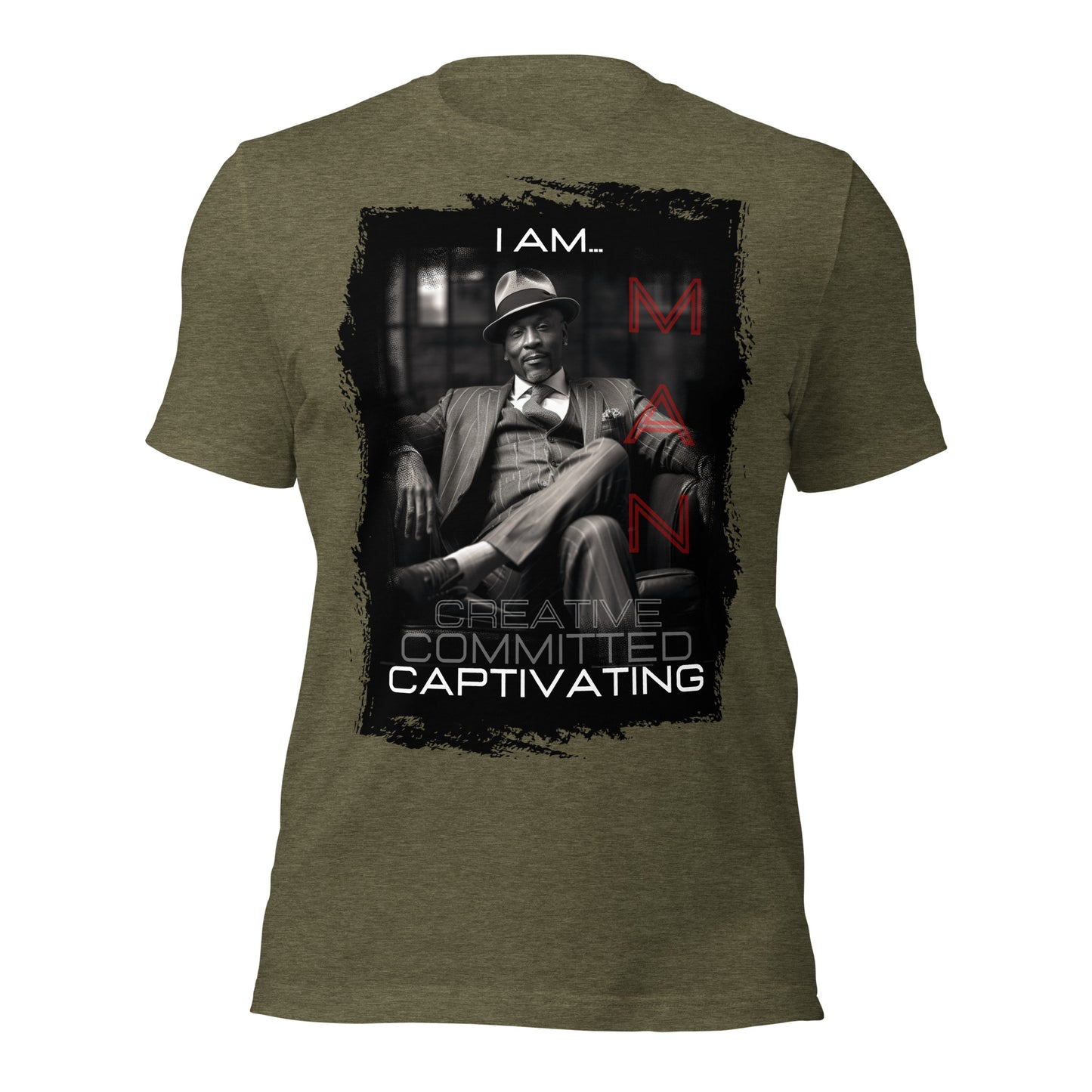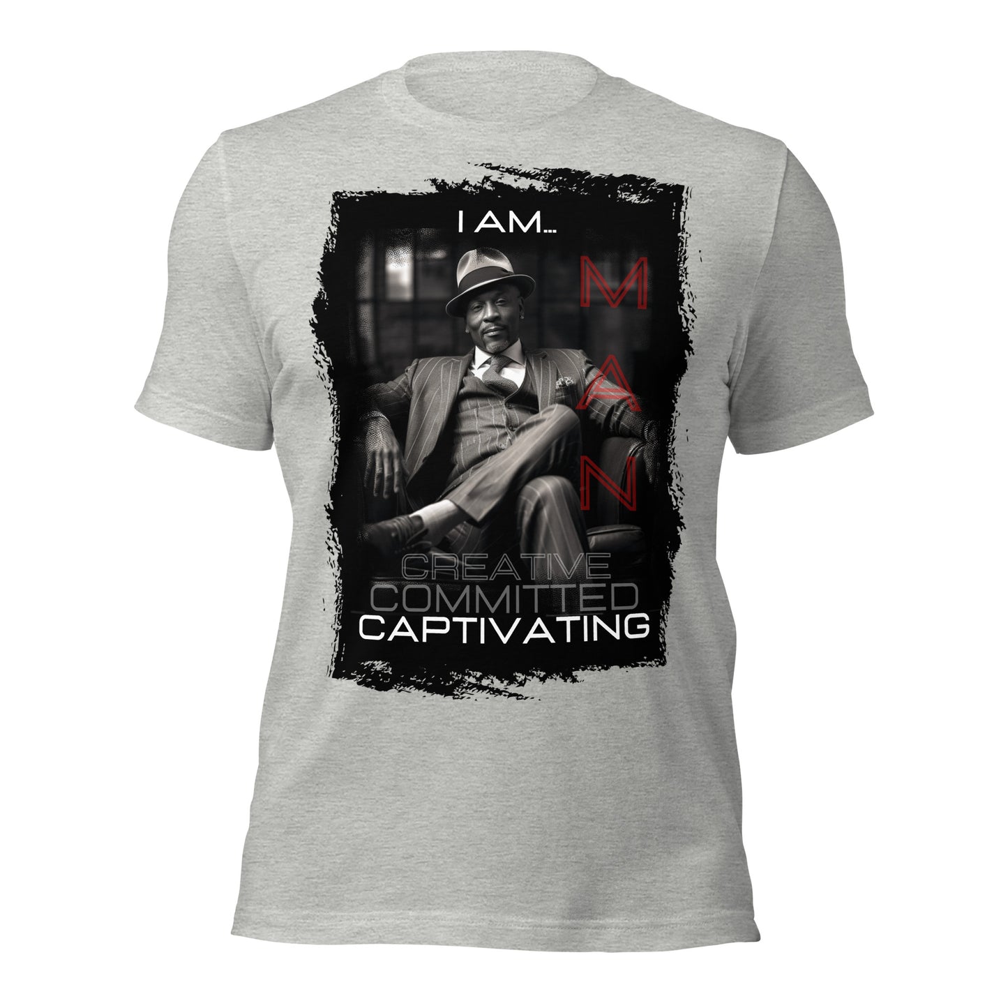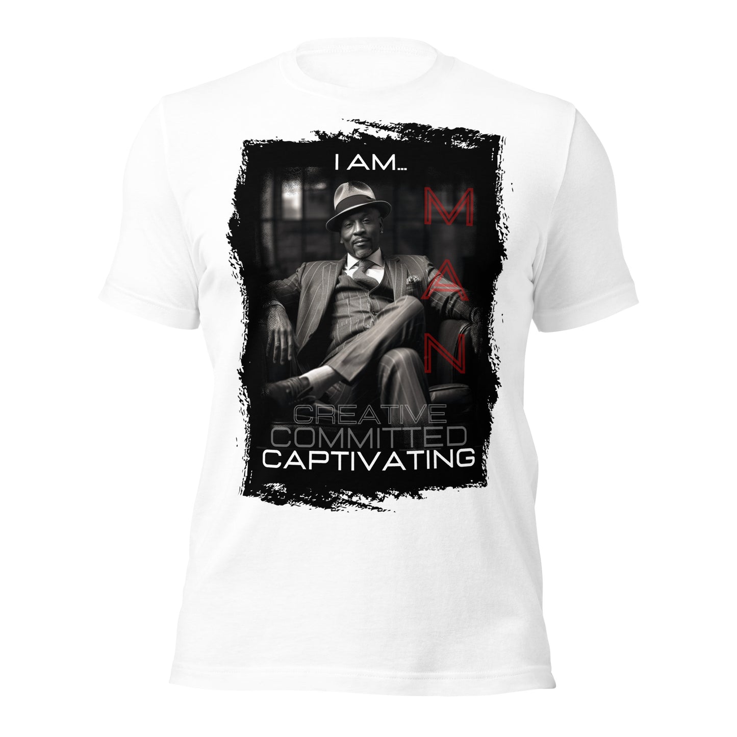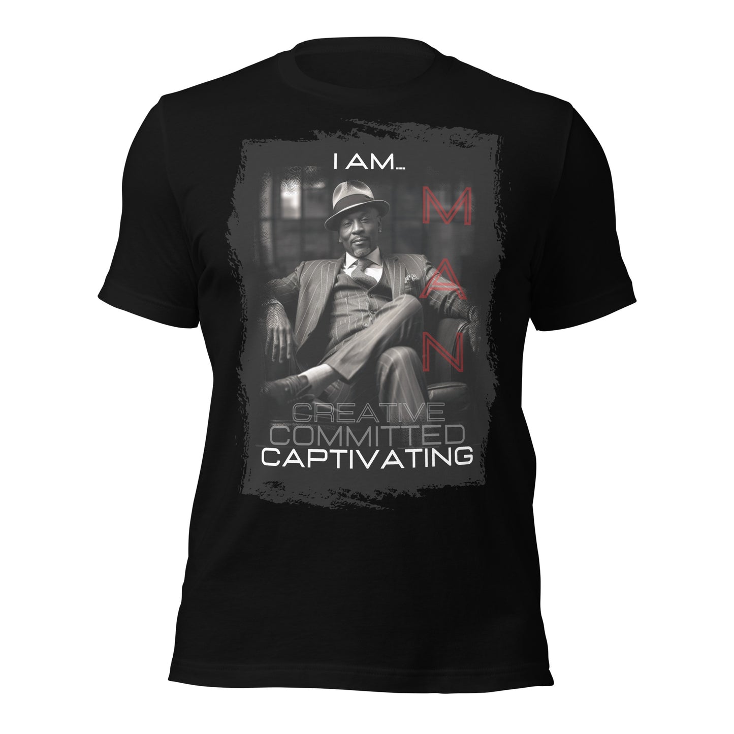 Introducing "Creative, Committed, Captivating" from the "I Am... Man" series in the HeWear Collection. This t-shirt embodies the essence of a man who is creatively driven, steadfastly committed, and naturally captivating. With striking typography and an alluring design, it's not just a shirt; it's a statement of your charismatic character. Crafted for comfort and style, it's your choice for making a captivating impression wherever you go.
