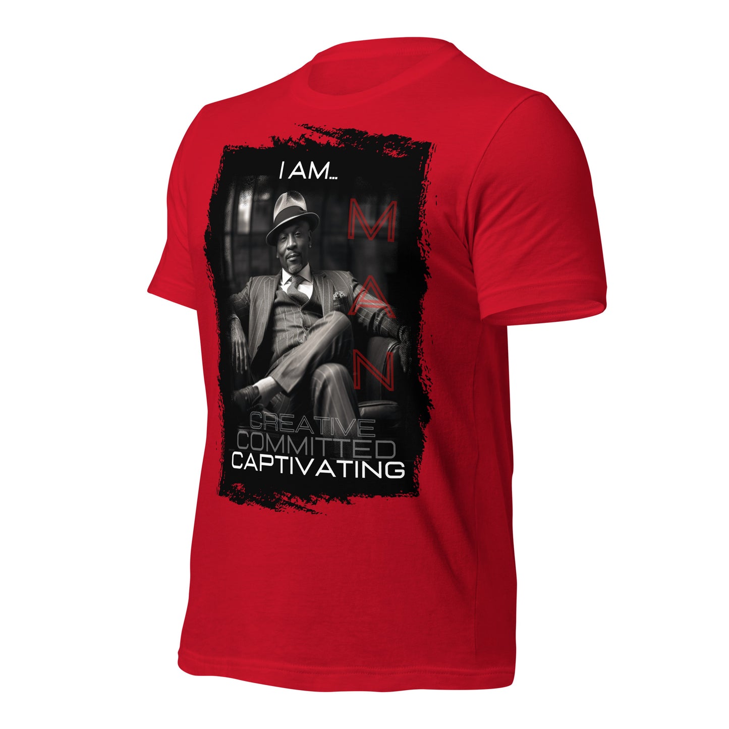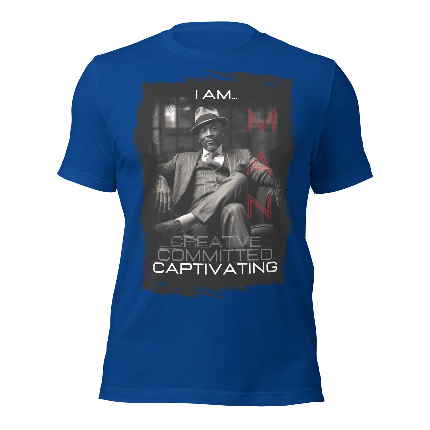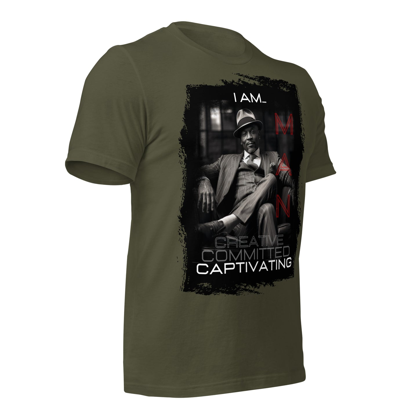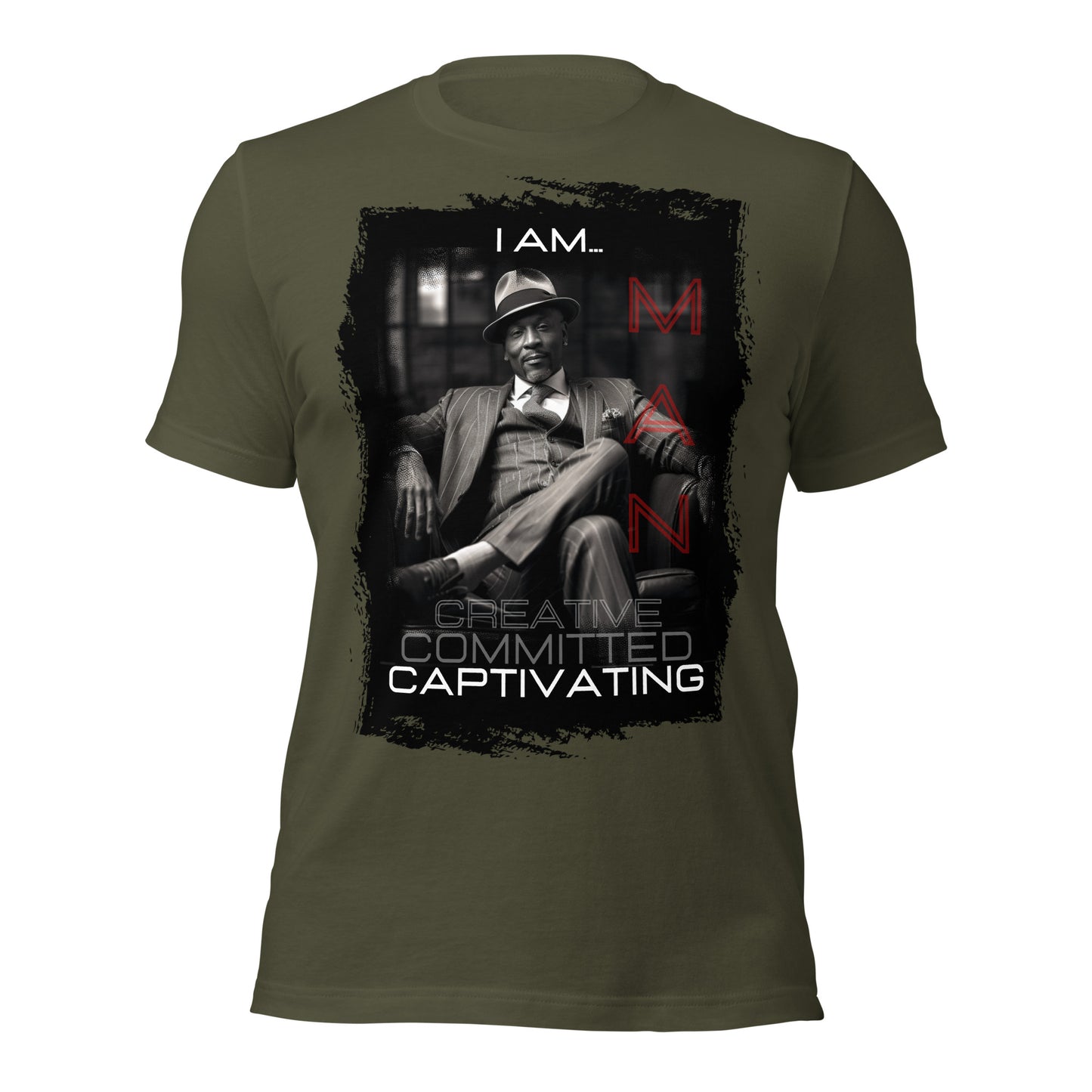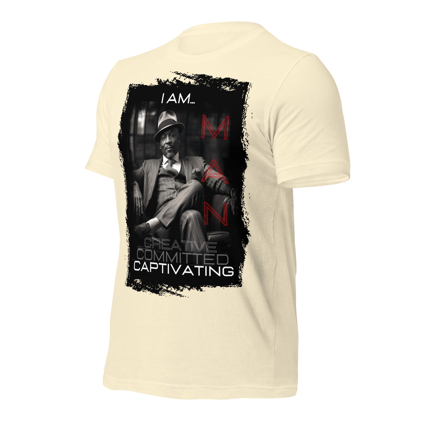 Introducing "Creative, Committed, Captivating" from the "I Am... Man" series in the HeWear Collection. This t-shirt embodies the essence of a man who is creatively driven, steadfastly committed, and naturally captivating. With striking typography and an alluring design, it's not just a shirt; it's a statement of your charismatic character. Crafted for comfort and style, it's your choice for making a captivating impression wherever you go.