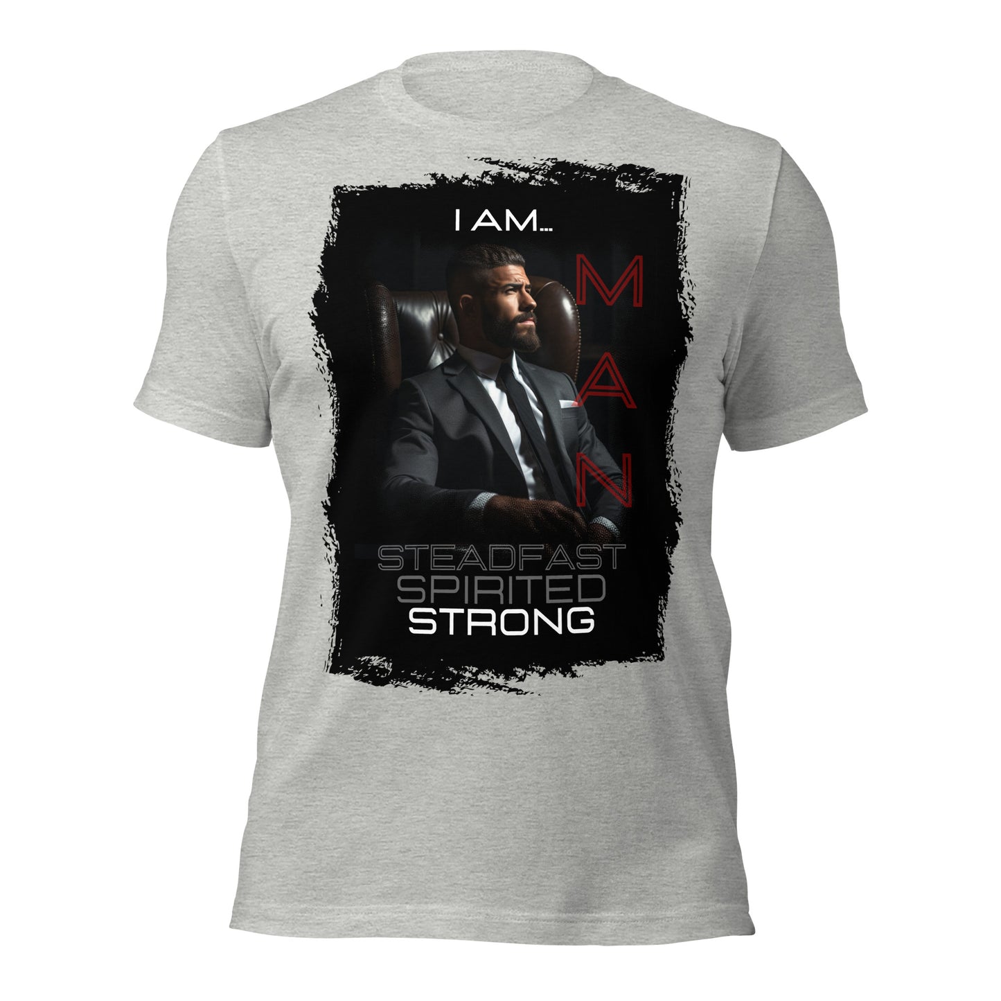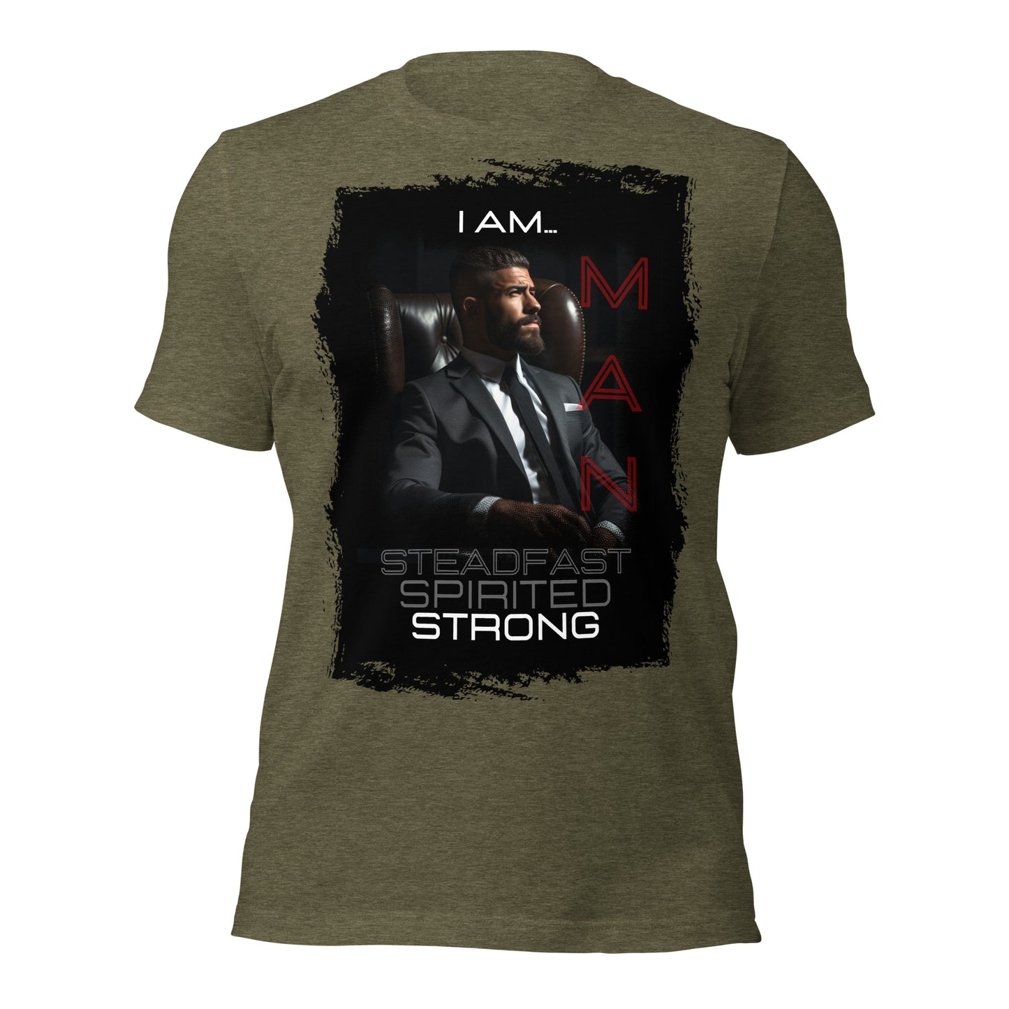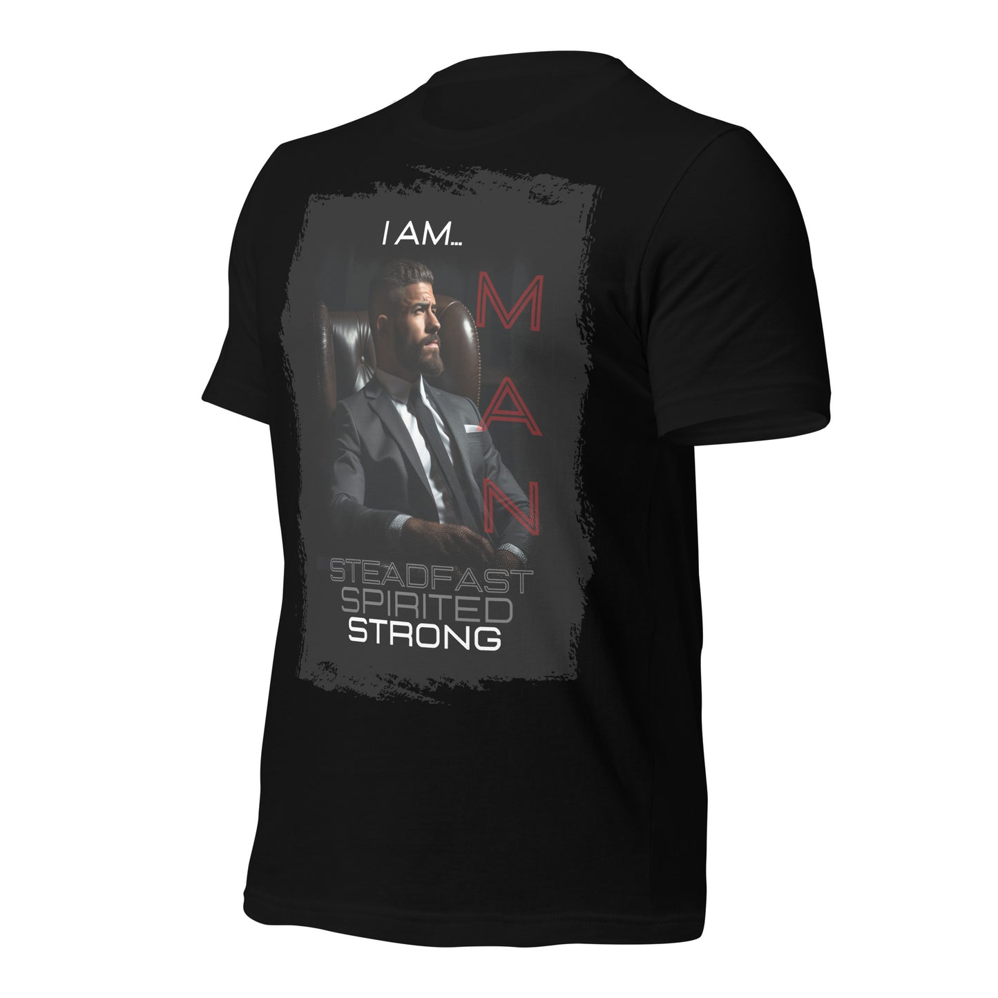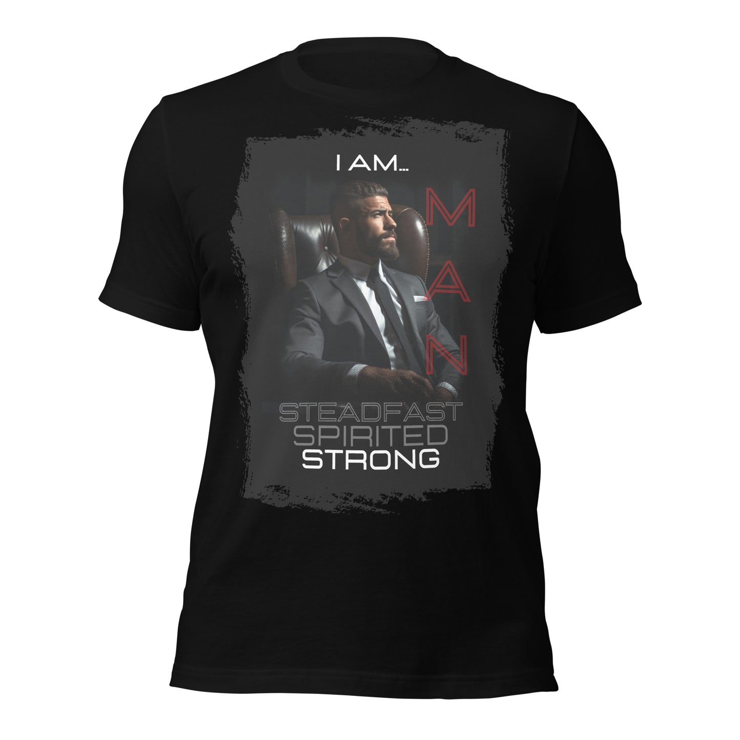 Introducing "Steadfast, Spirited, Strong" from the "I Am... Man" series in the HeWear Collection. This t-shirt embodies the spirit of a man who is resolutely steadfast, energetically spirited, and profoundly strong. With striking typography and an inspiring design, it's more than just a shirt; it's a declaration of your unwavering character. Crafted for comfort and style, it's your choice for making a powerful statement of strength and resilience.