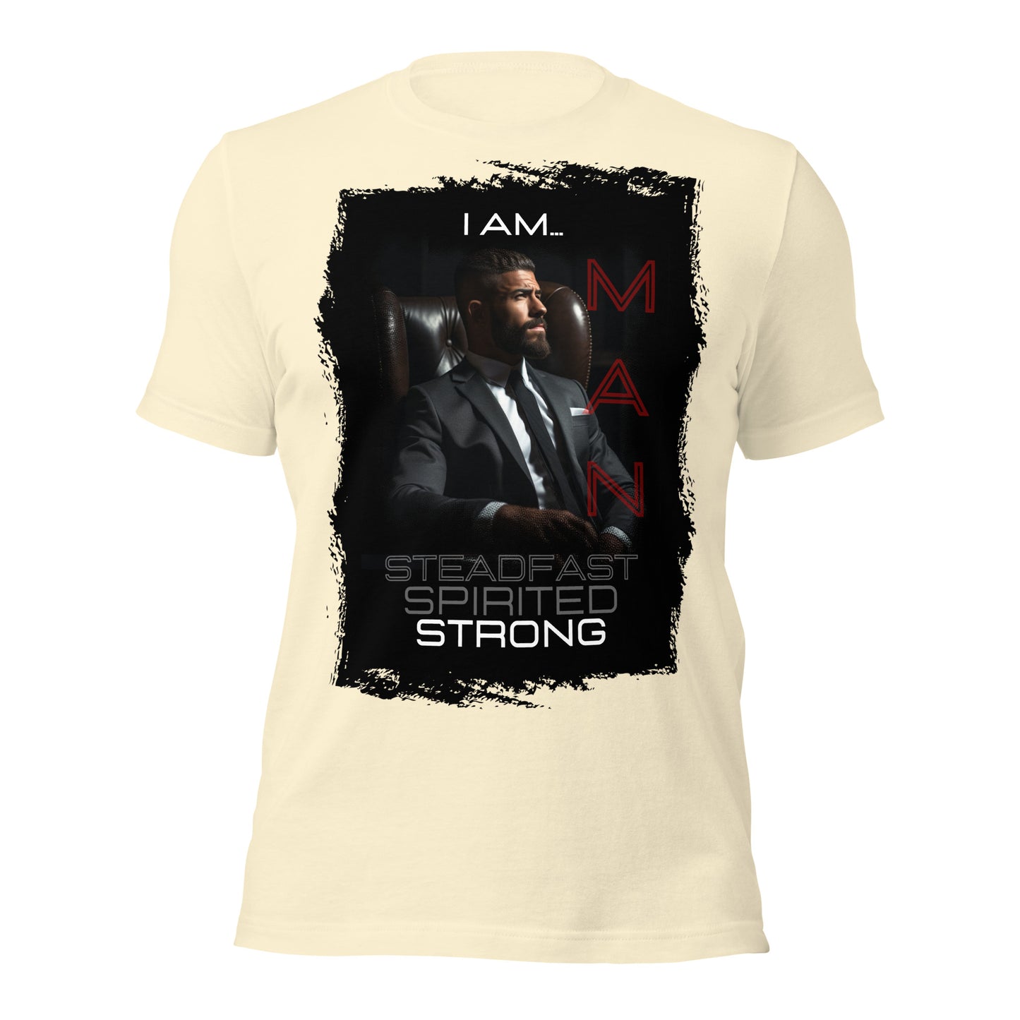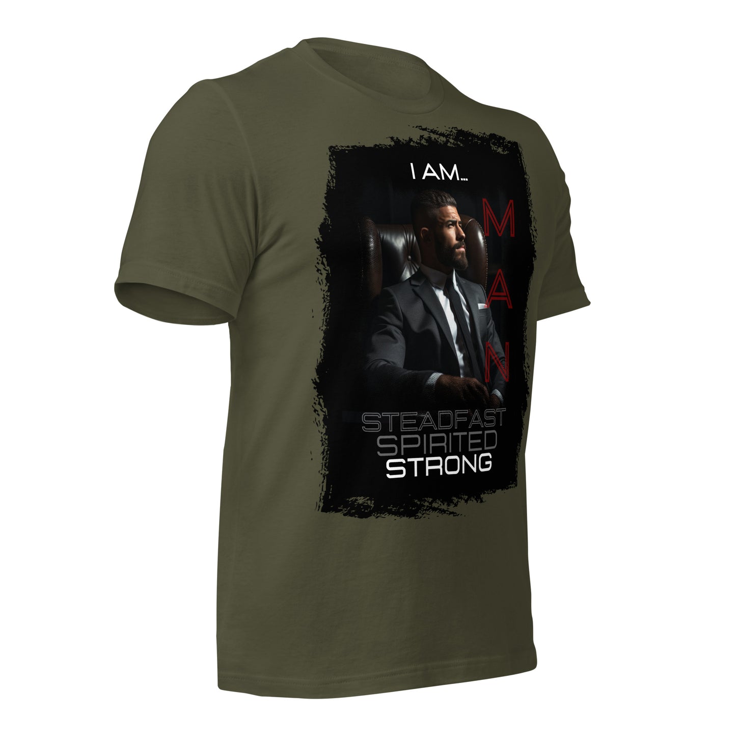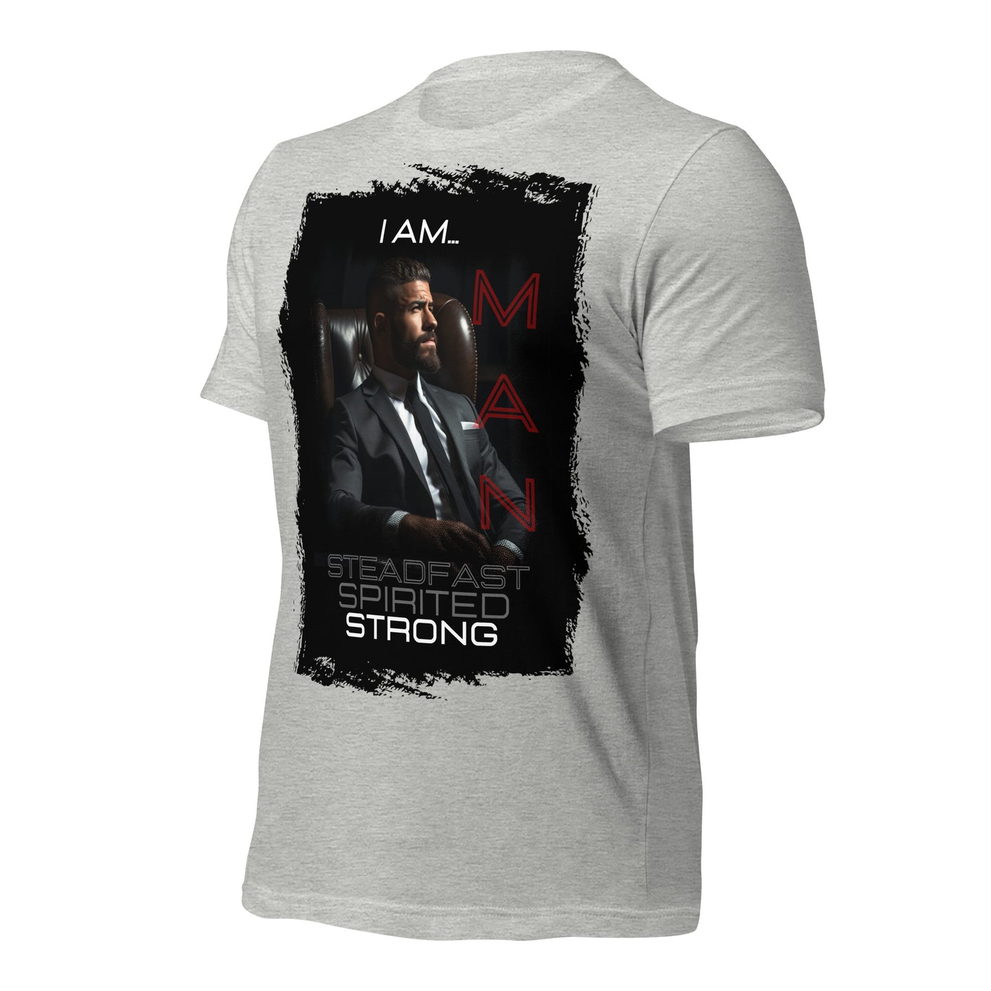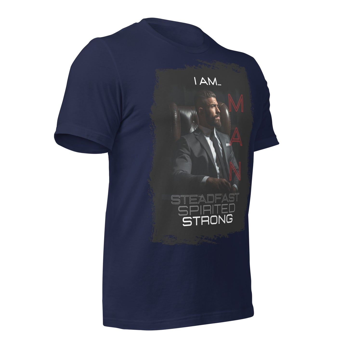 Introducing "Steadfast, Spirited, Strong" from the "I Am... Man" series in the HeWear Collection. This t-shirt embodies the spirit of a man who is resolutely steadfast, energetically spirited, and profoundly strong. With striking typography and an inspiring design, it's more than just a shirt; it's a declaration of your unwavering character. Crafted for comfort and style, it's your choice for making a powerful statement of strength and resilience.