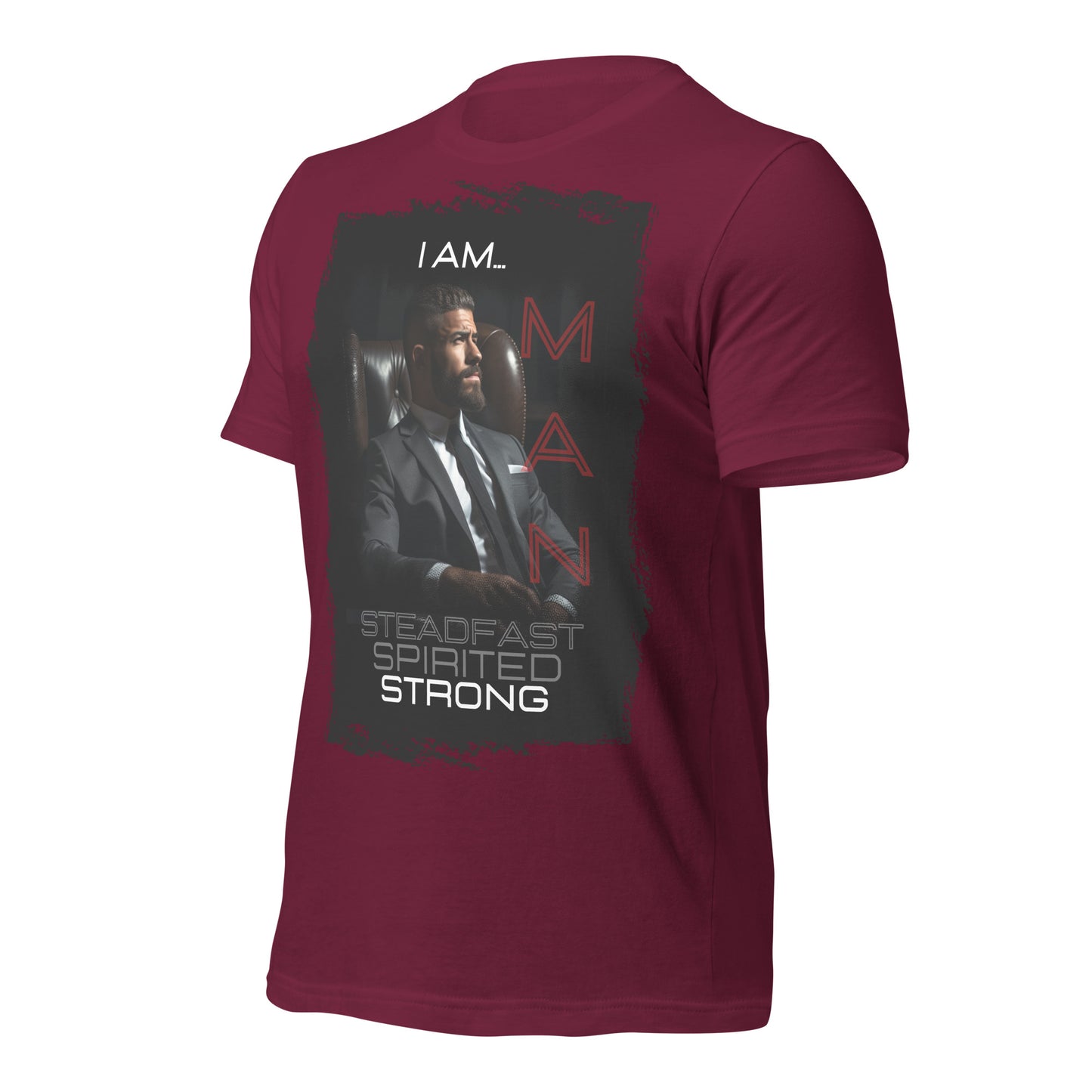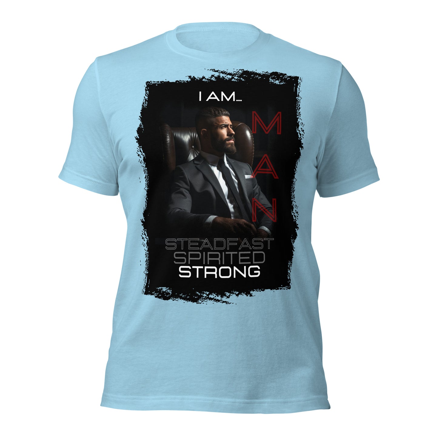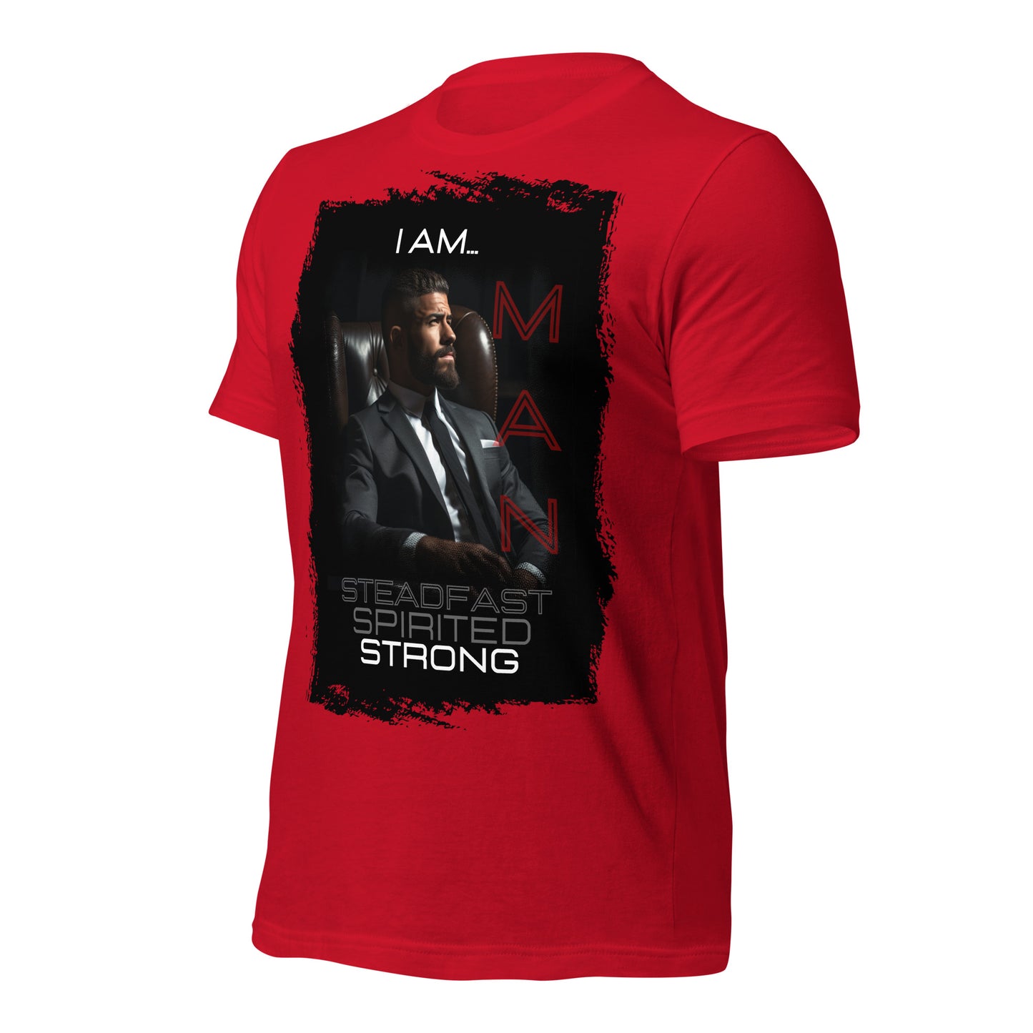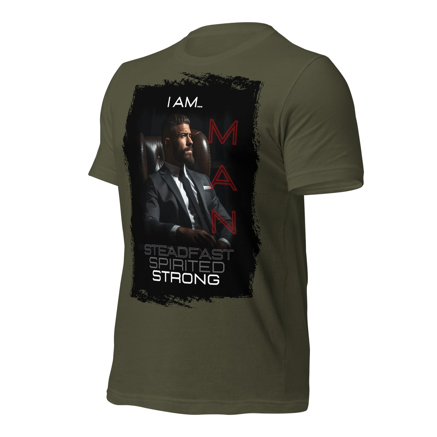 Introducing "Steadfast, Spirited, Strong" from the "I Am... Man" series in the HeWear Collection. This t-shirt embodies the spirit of a man who is resolutely steadfast, energetically spirited, and profoundly strong. With striking typography and an inspiring design, it's more than just a shirt; it's a declaration of your unwavering character. Crafted for comfort and style, it's your choice for making a powerful statement of strength and resilience.