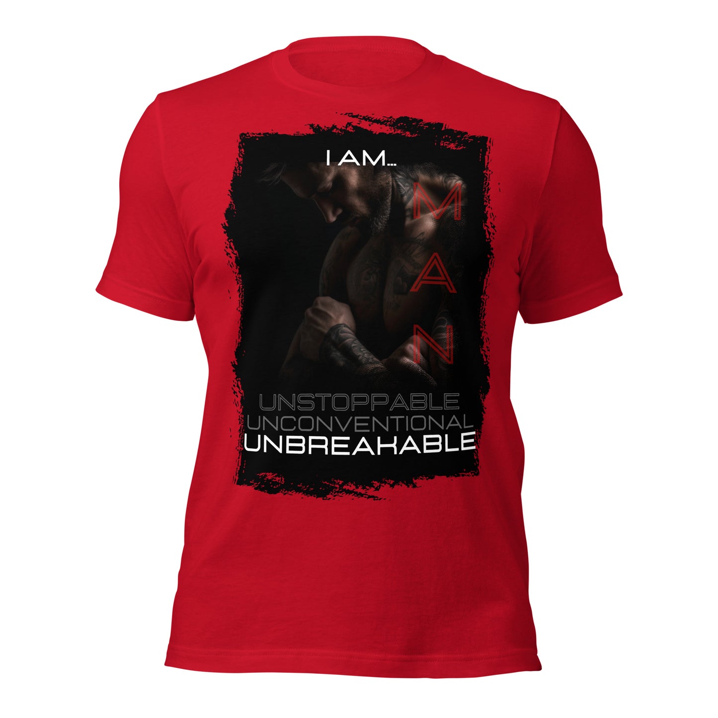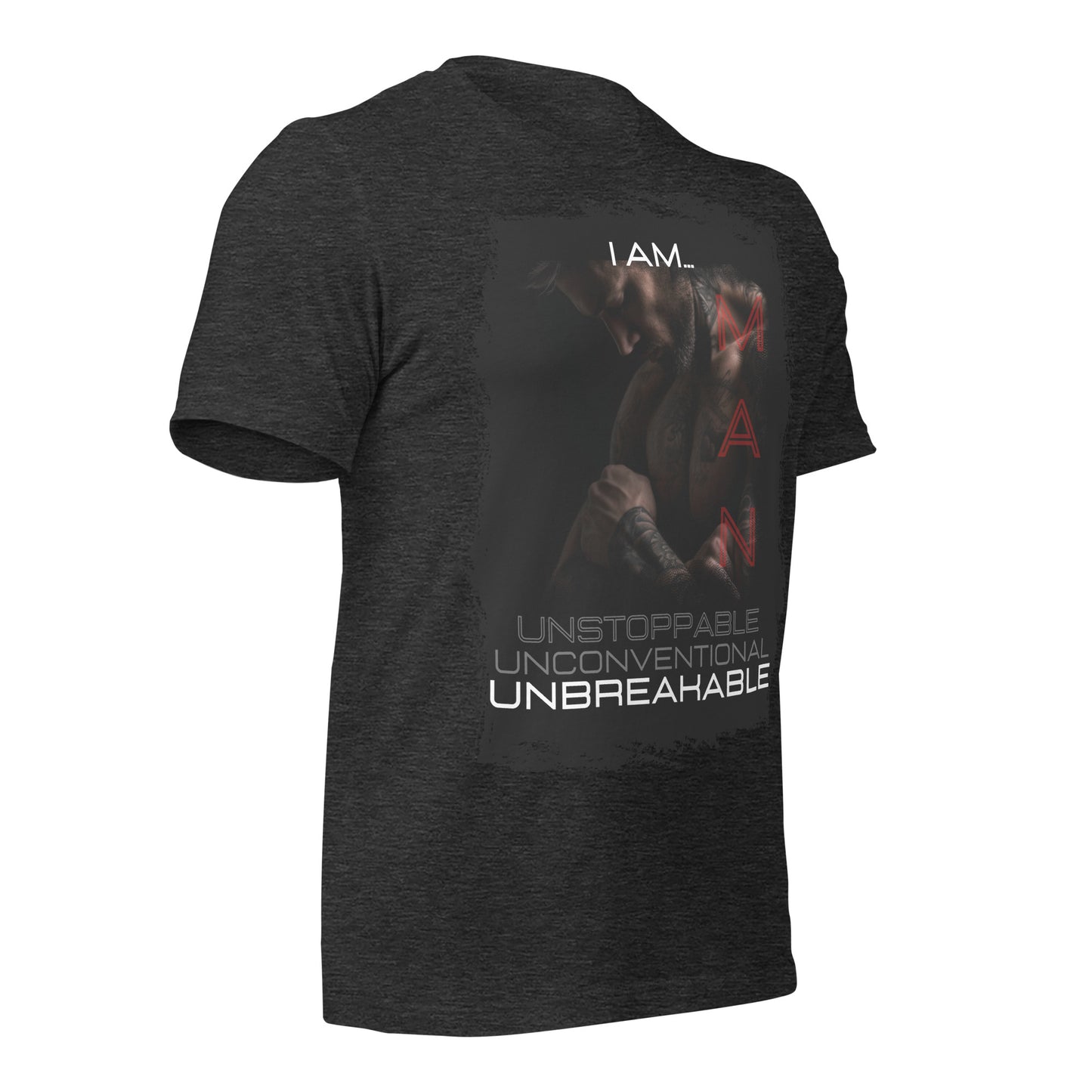 Introducing "Unstoppable, Unconventional, Unbreakable" from the "I Am... Man" series in the HeWear Collection. This t-shirt embodies the spirit of a man who is relentlessly unstoppable, delightfully unconventional, and unbreakably resilient. With bold typography and an edgy design, it's not just a shirt; it's a declaration of your unwavering character. Crafted for comfort and style, it's your choice for making an indomitable statement.