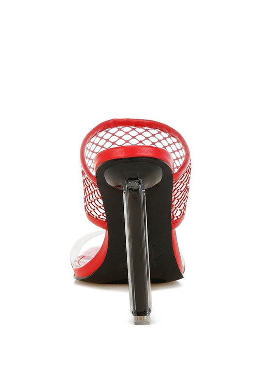 Make a chic addition to your footwear collection with these clear heels featuring a rhinestone embellished mesh upper. The transparent strap adds a touch of whimsy while the cushioned insole retains comfort. Style these heels with your elegant party dresses to make a shine bright.