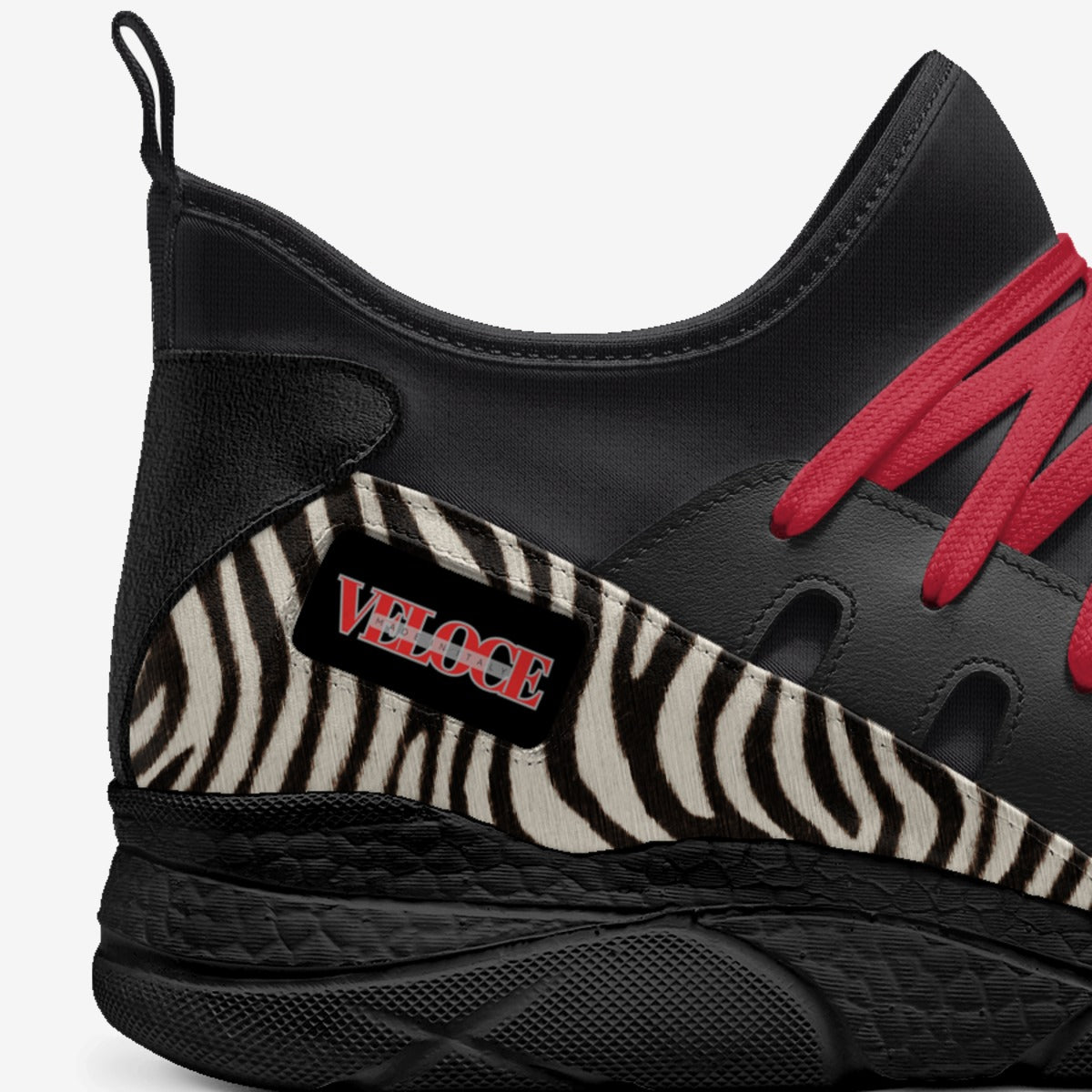 Featuring a bold high-top silhouette, striking red laces, and signature zebra-patterned detailing, Veloce Flux delivers a modern, fashion-forward look that stands out on any street, runway, or creative scene.